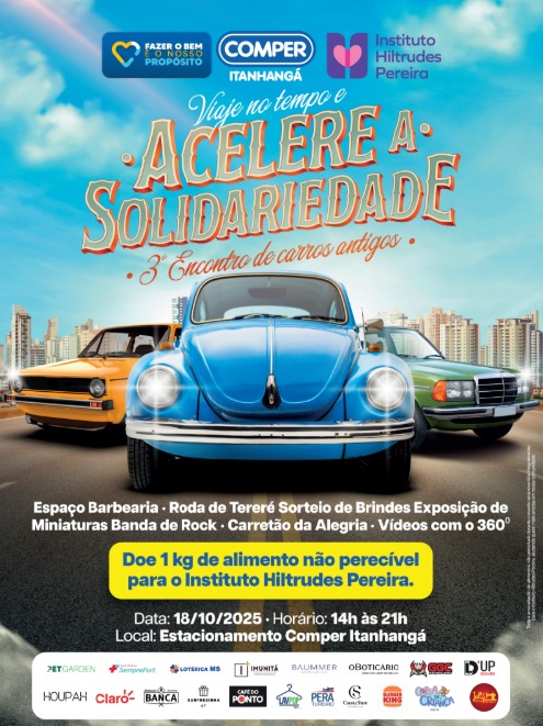 Neste sábado, 18 de outubro, Campo Grande será sede da terceira edição do “Acelere a Solidariedade”, promovido pela Confraria Apaixonados por Fusca e Derivados MS. O evento será realizado das 14h às 21h, no estacionamento aberto do Comper Itanhangá, e tem como proposta unir a valorização da cultura automotiva com ações de solidariedade.
